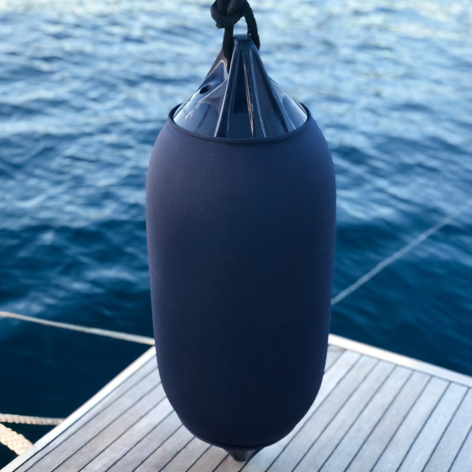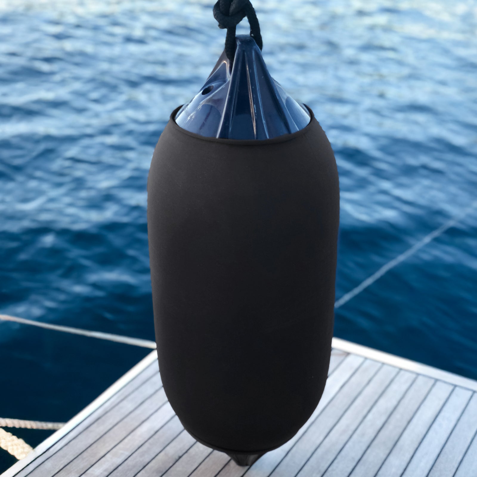 Rollneck fender covers are made of solution-dyed polyester combined with UV resistant elastane. This combination gives Rollnecks high UV and abrasion resistance. Made in Germany by fender-design.